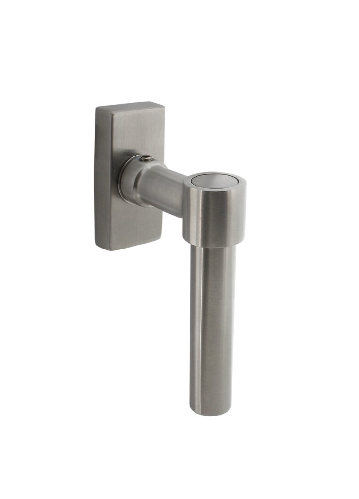 This L-shaped stainless steel window handle has been brushed afterwards, giving it a matte appearance.