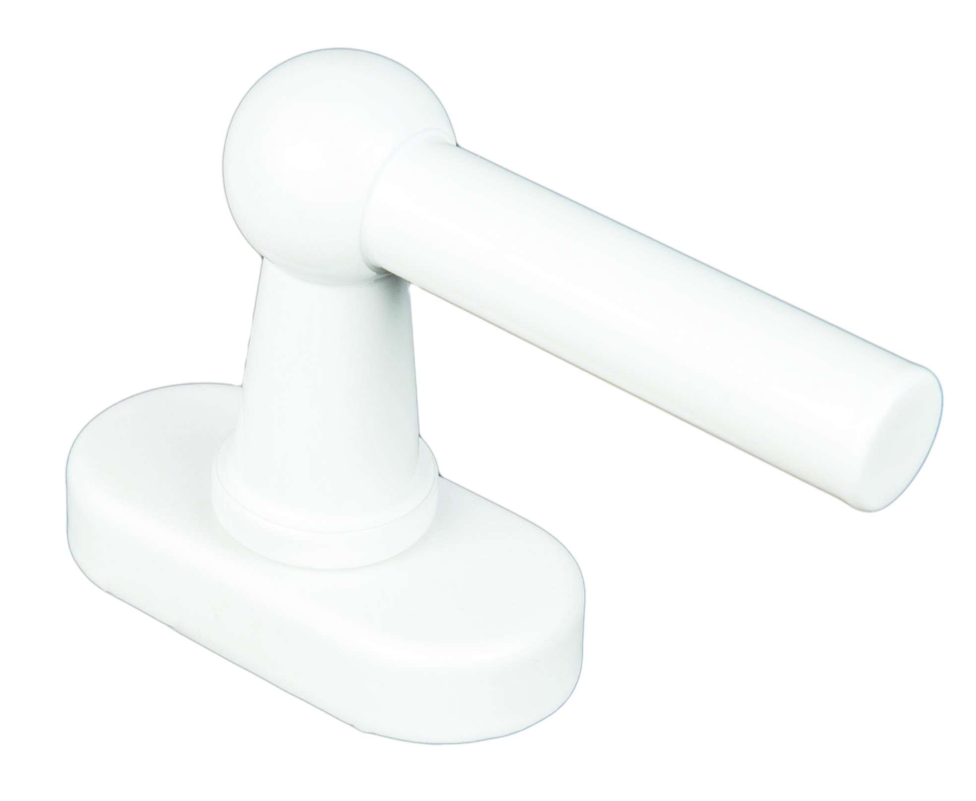 These white window handles are supplied per piece including mounting materials and matching pin of 7X7X40mm. The holes to attach this window handle are at a distance of 43mm.