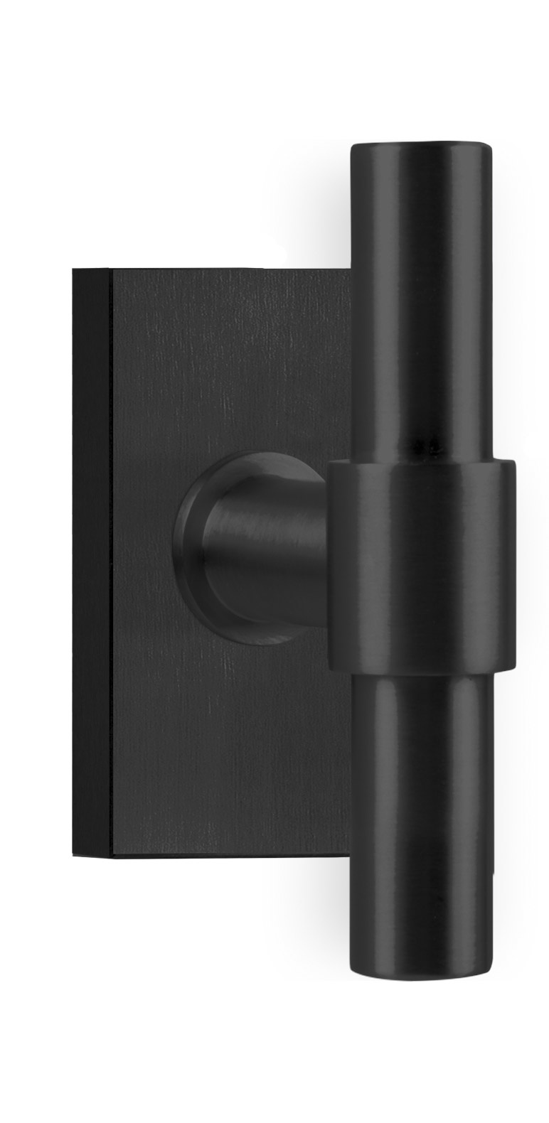 The black PVD window handle is on a rectangular rosette of 70x35 mm that is 12 mm thick. The T-shaped handle has a length of 100 mm and a Ø of 15 mm. This window handle has a stainless steel base after which it is finished with an extra strong matt black PVD coating.