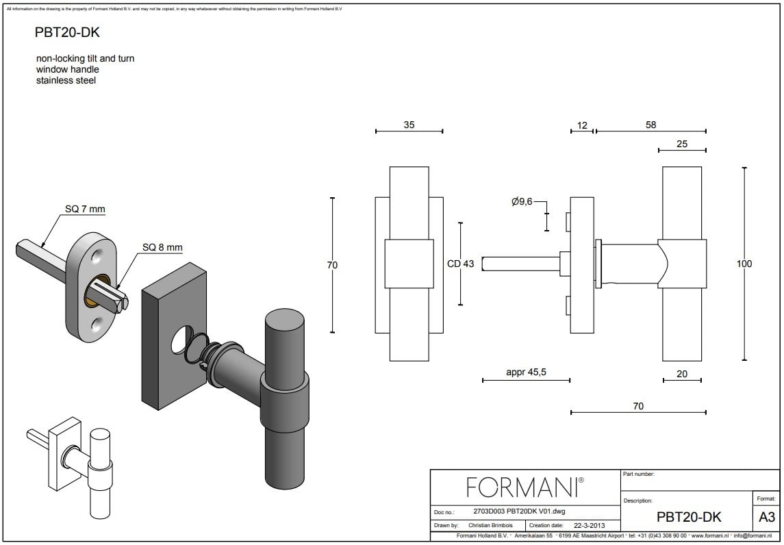 The window handle is supplied per piece, including mounting material and a 7x7 mm pin that can be shortened to size if necessary.