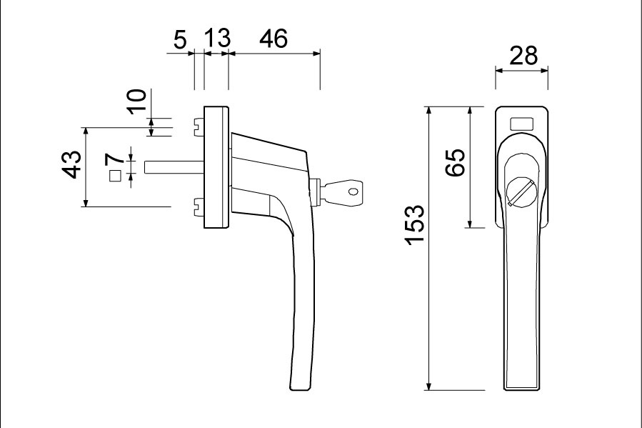 Burglar-resistant window handle with key made of aluminum and finished with strong F1 aluminum finish.