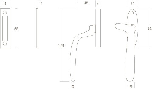 This right-hand window closure "Dudok" made of matt Chrome is brushed as a final treatment, which gives the matt appearance.