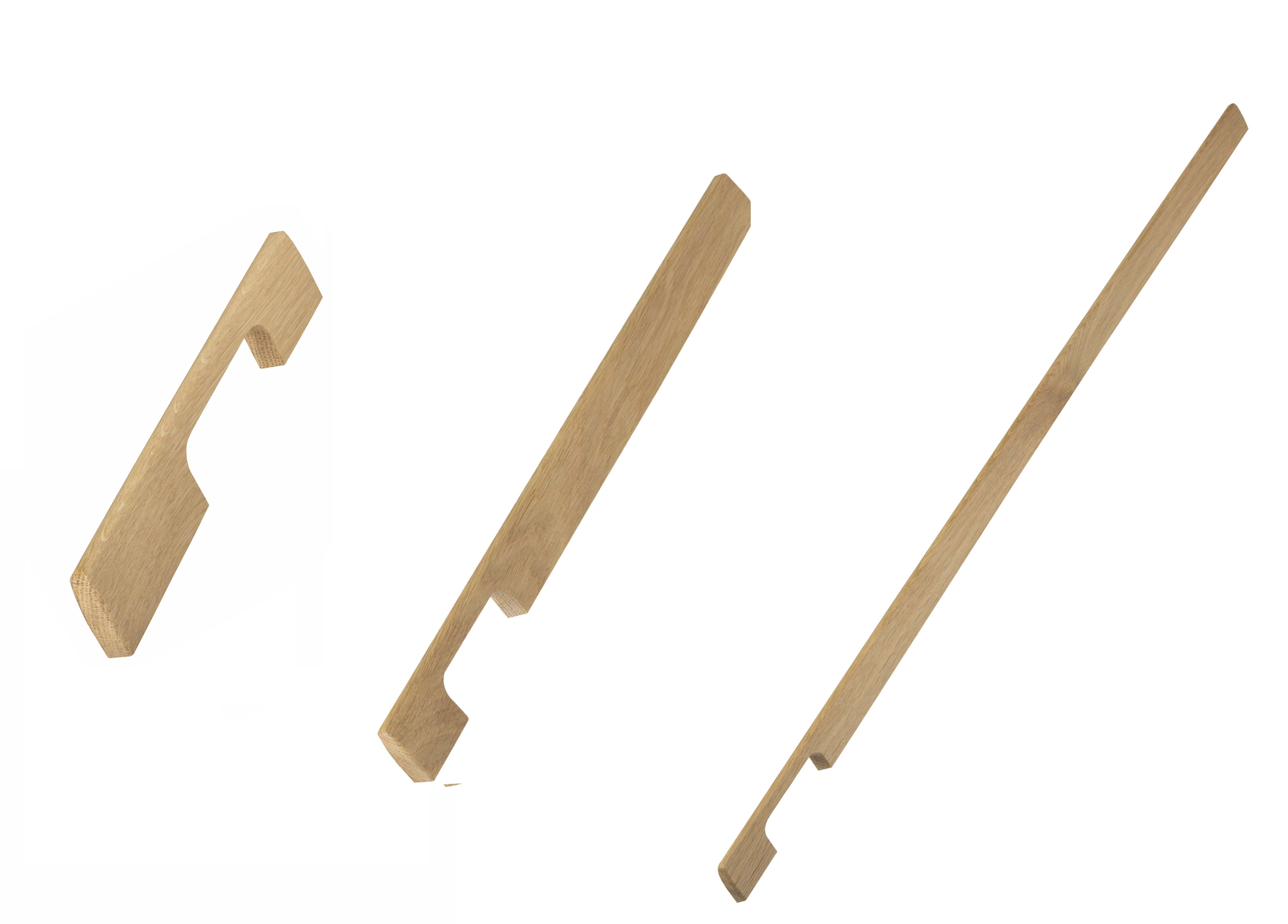 These oak furniture handles are available in three lengths, which you can select in the scroll menu at the top right.