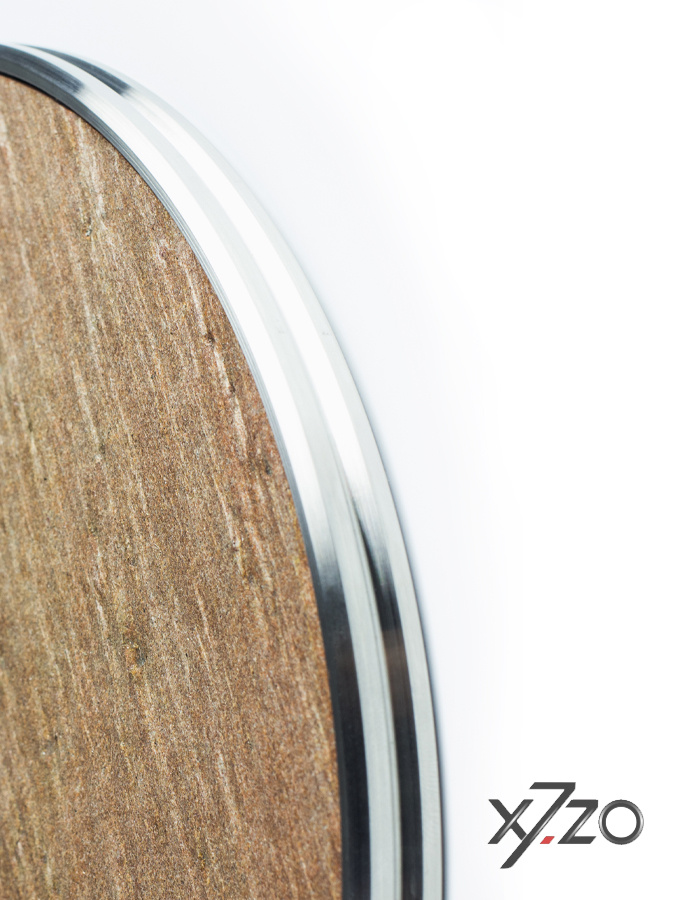 Description Single round stainless steel design door handle Z52 - Ø 198 mm finished with copper-colored stone veneer and a base of Ø 100 mm suitable for indoors and outdoors