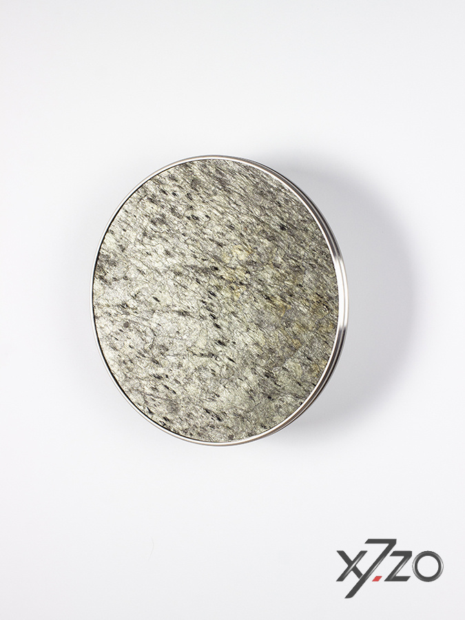 This beautiful round door handle, designed and produced in Europe, combines a sturdy solid stainless steel base with a refined stone veneer finish in a warm silver color.
