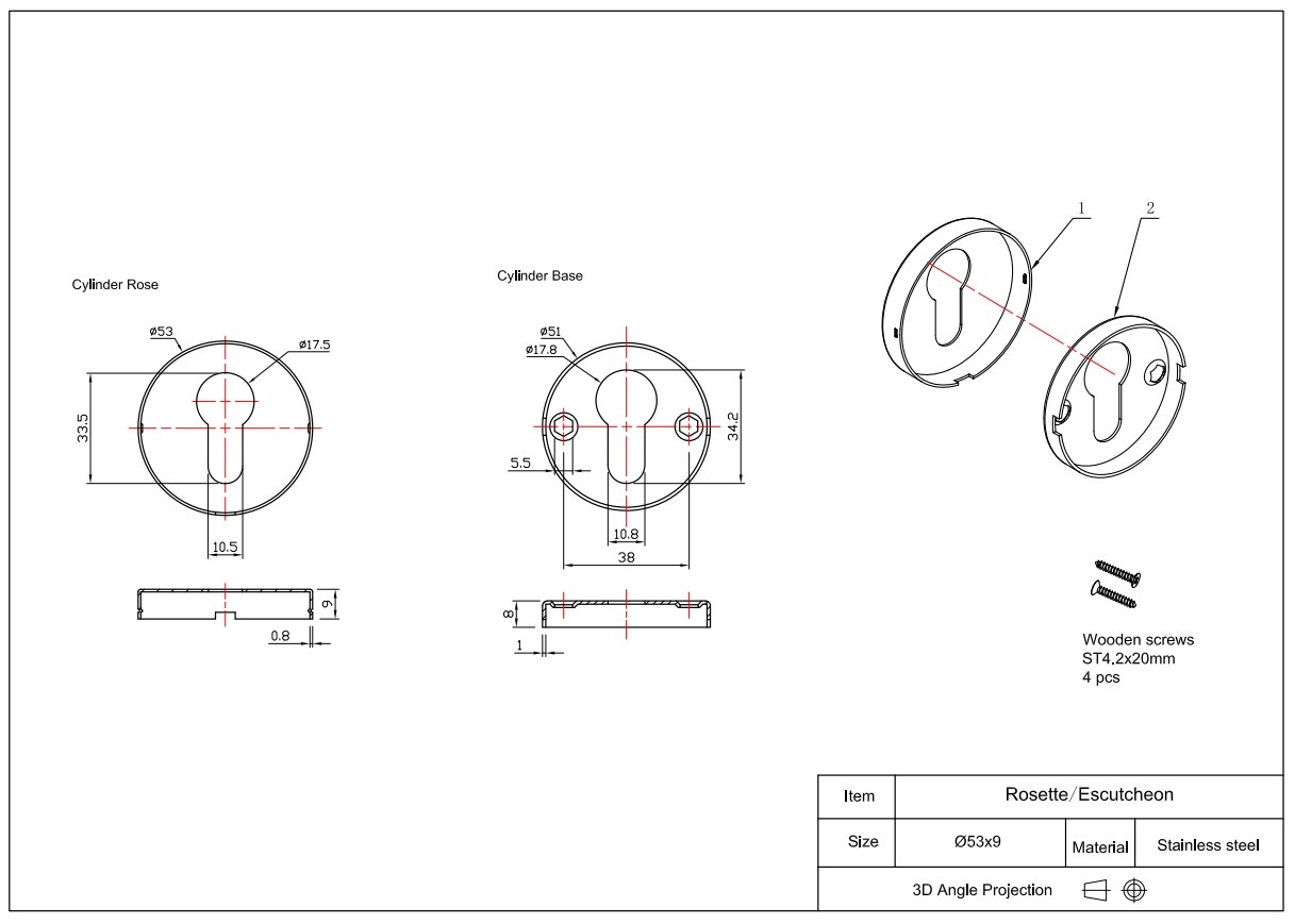 Ces rosaces de cylindre en acier inoxydable noir mat sont livrées par paire dans une version ronde avec une ouverture pour une serrure à cylindre.