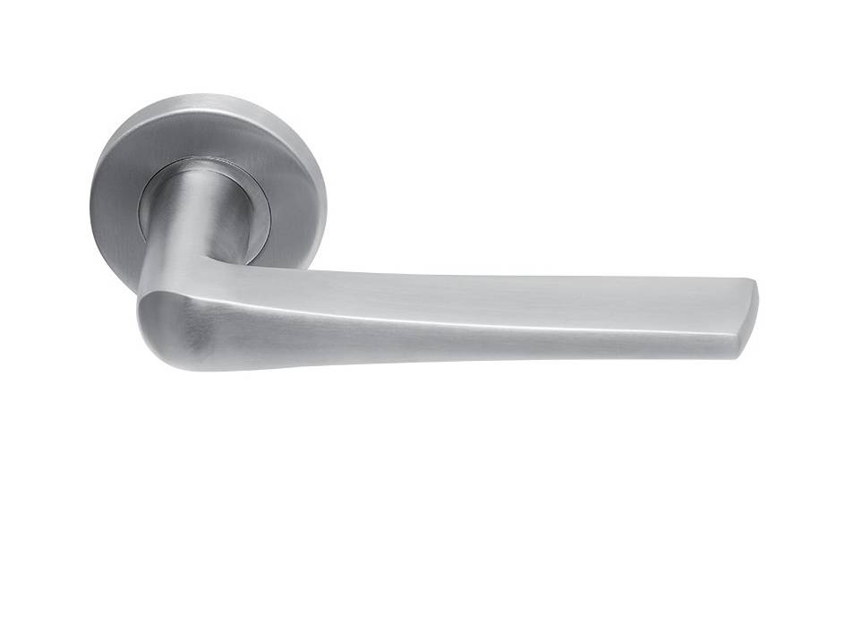 Ces poignées de porte massives en acier inoxydable sont livrées sur une rosace ronde.