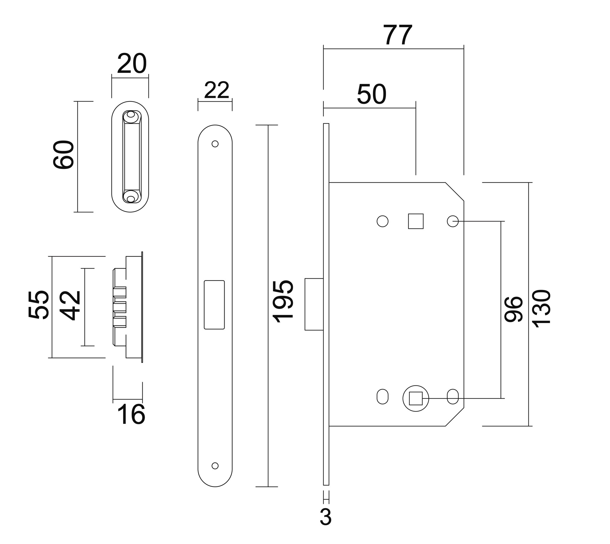 Cette serrure magnétique avec ouverture pour ensemble WC AGB est dotée d'une têtière blanche de 22 mm de large et 195 mm de haut. Son axe mesure 96 mm et son entraxe est de 50 mm.
