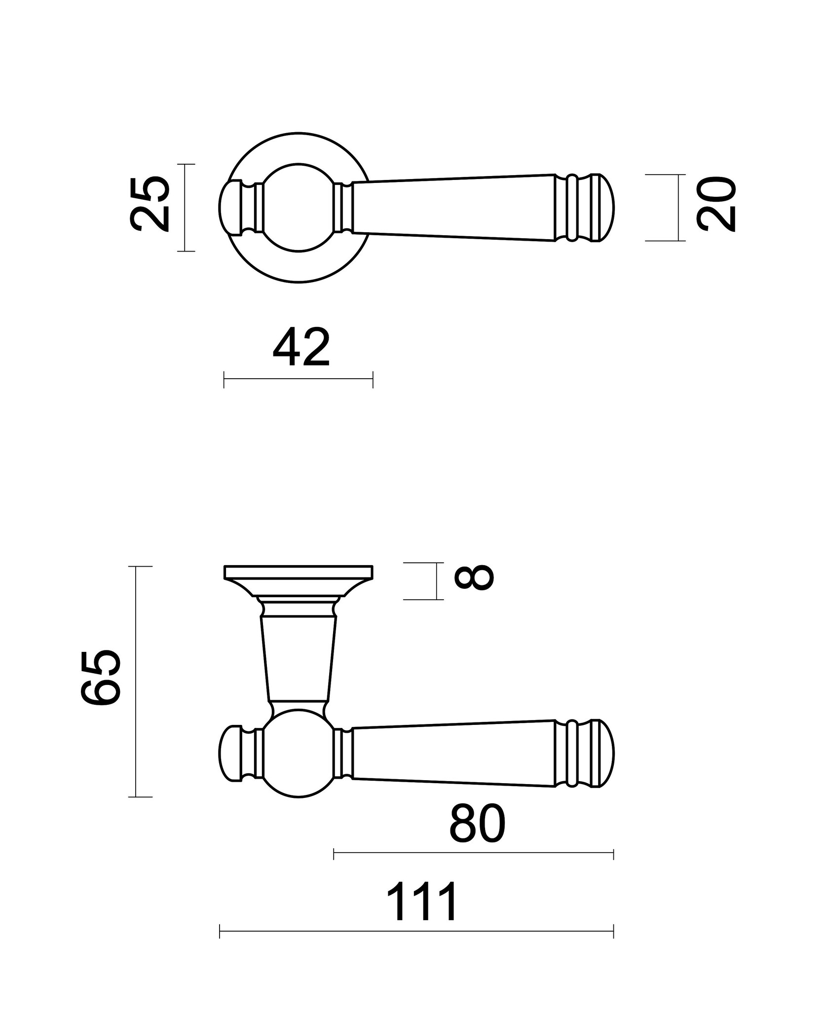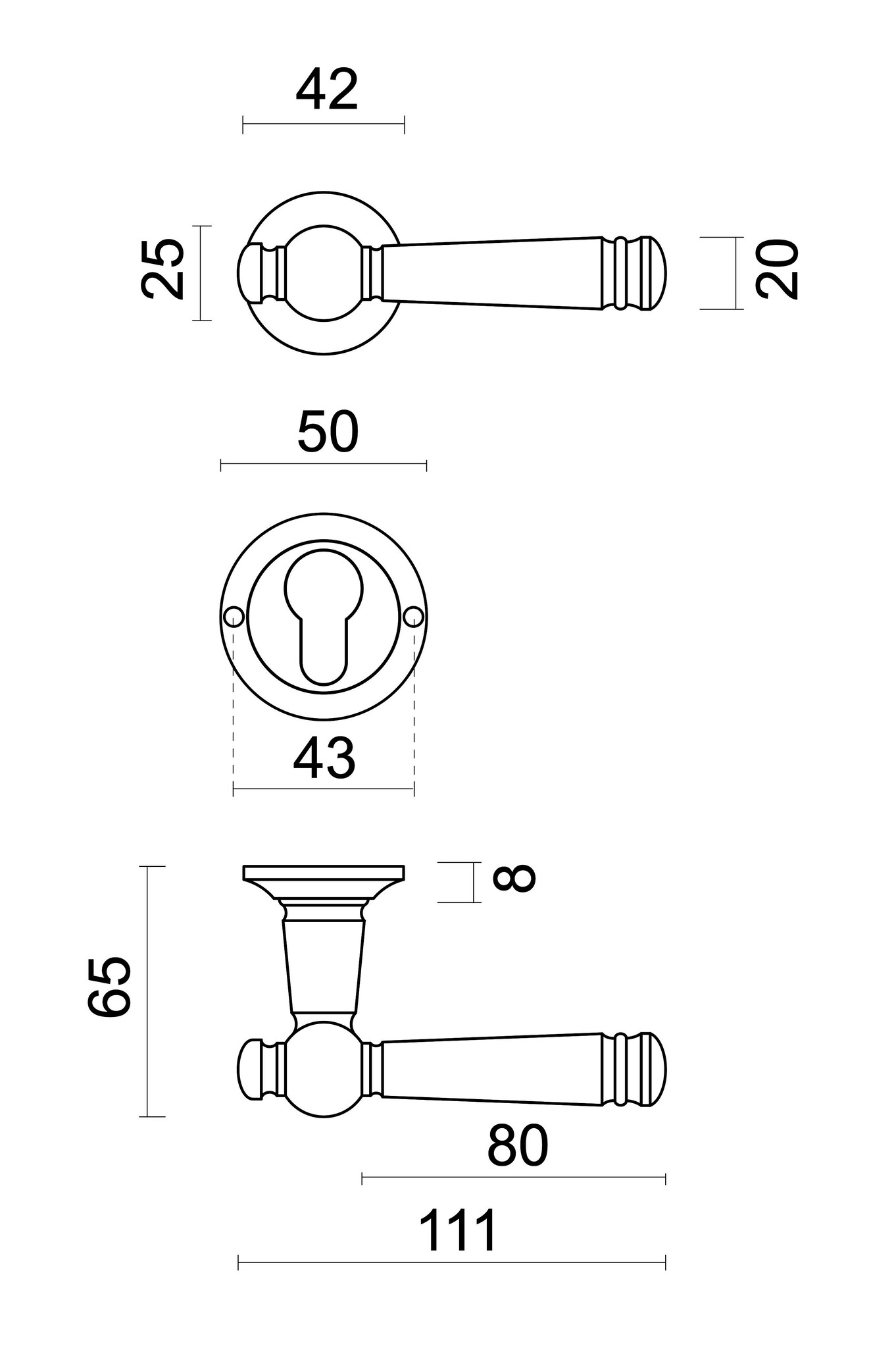 Les poignées de porte sont sur une rosace ronde de 42 mm et sont fournies par paire comprenant une broche carrée (8x8 mm) et le matériel de montage.