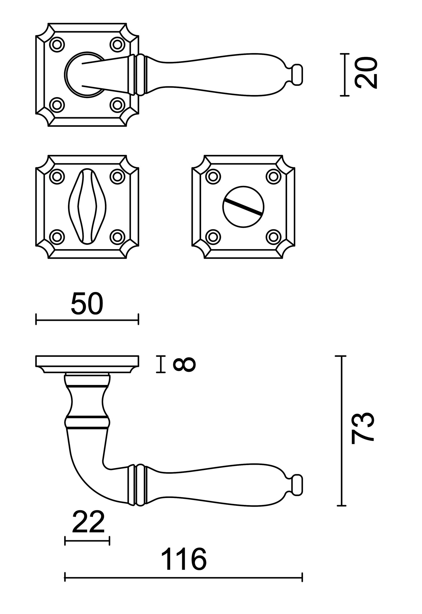 Ces poignées de porte sont disponibles en 4 variantes : sans plaques à clés, avec plaques à clés, avec plaques à cylindre et avec ferrures pour toilettes. Faites votre choix dans le menu déroulant en haut à droite .