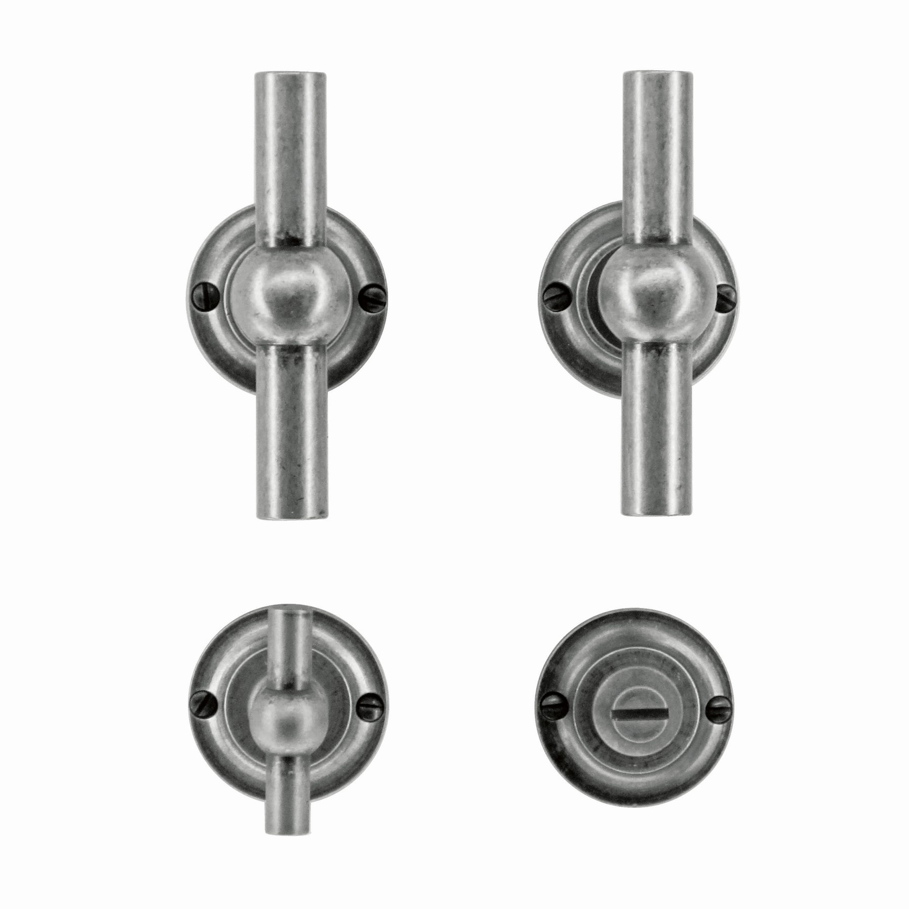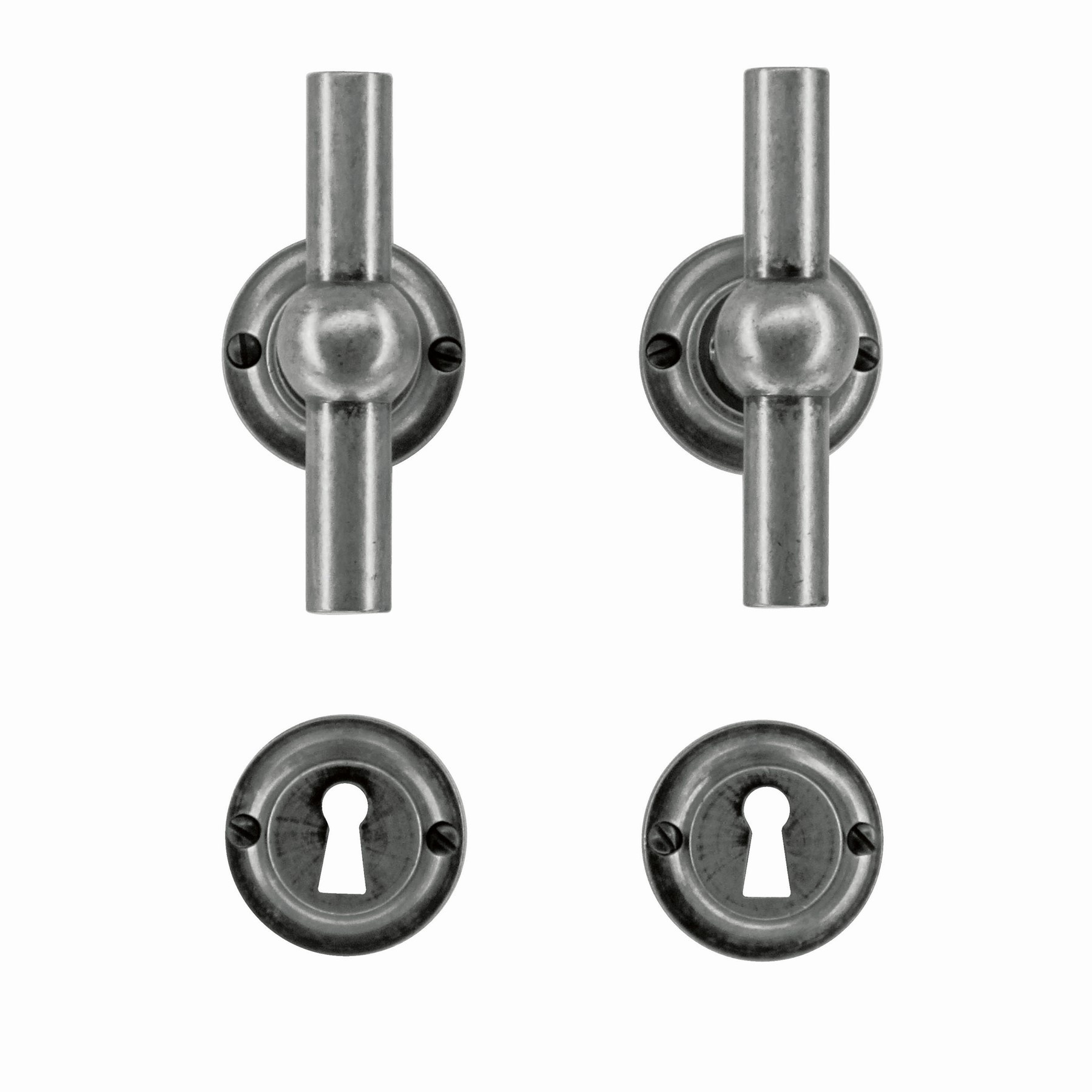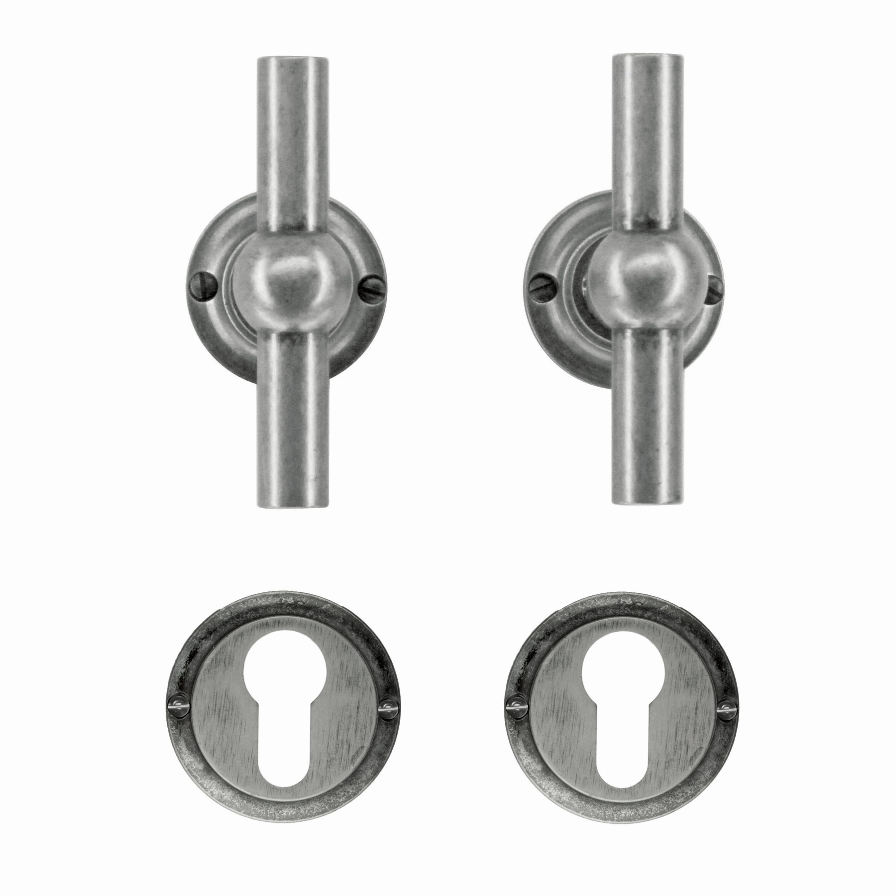 Ensemble de poignées de porte professionnelles en vieil argent avec combinaison T+T. Disponible en 4 variantes