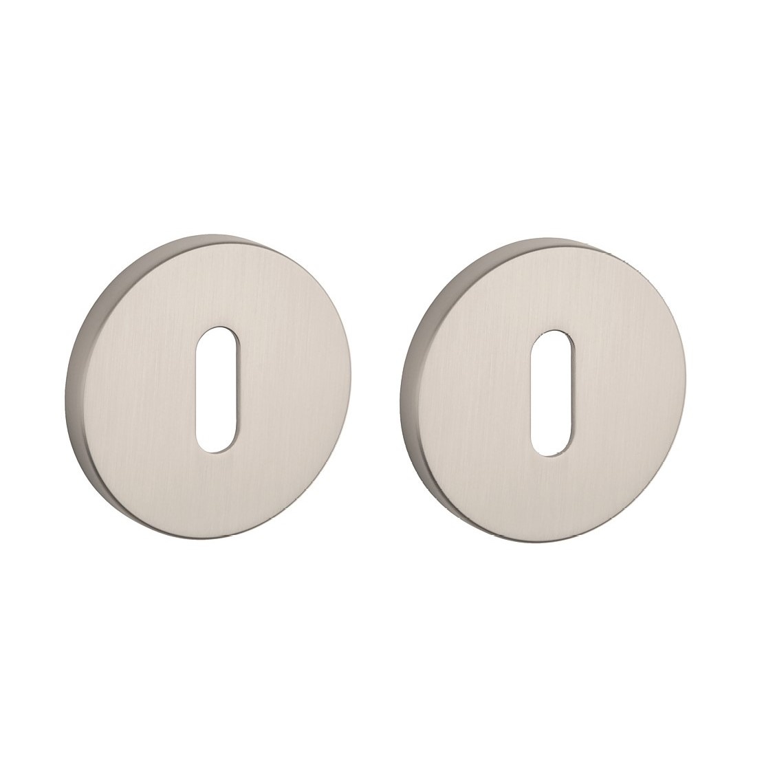 Ces rosaces à clé en nickel satiné ont un diamètre de 53 mm et une épaisseur de seulement 7 mm ce qui leur confère un aspect esthétique sur les portes.