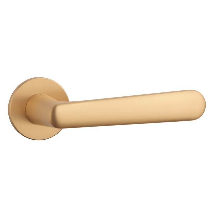 Ces belles poignées de porte design en or mat ont un design intemporel et classique et sont montées sur des rosaces rondes Ø52mm.