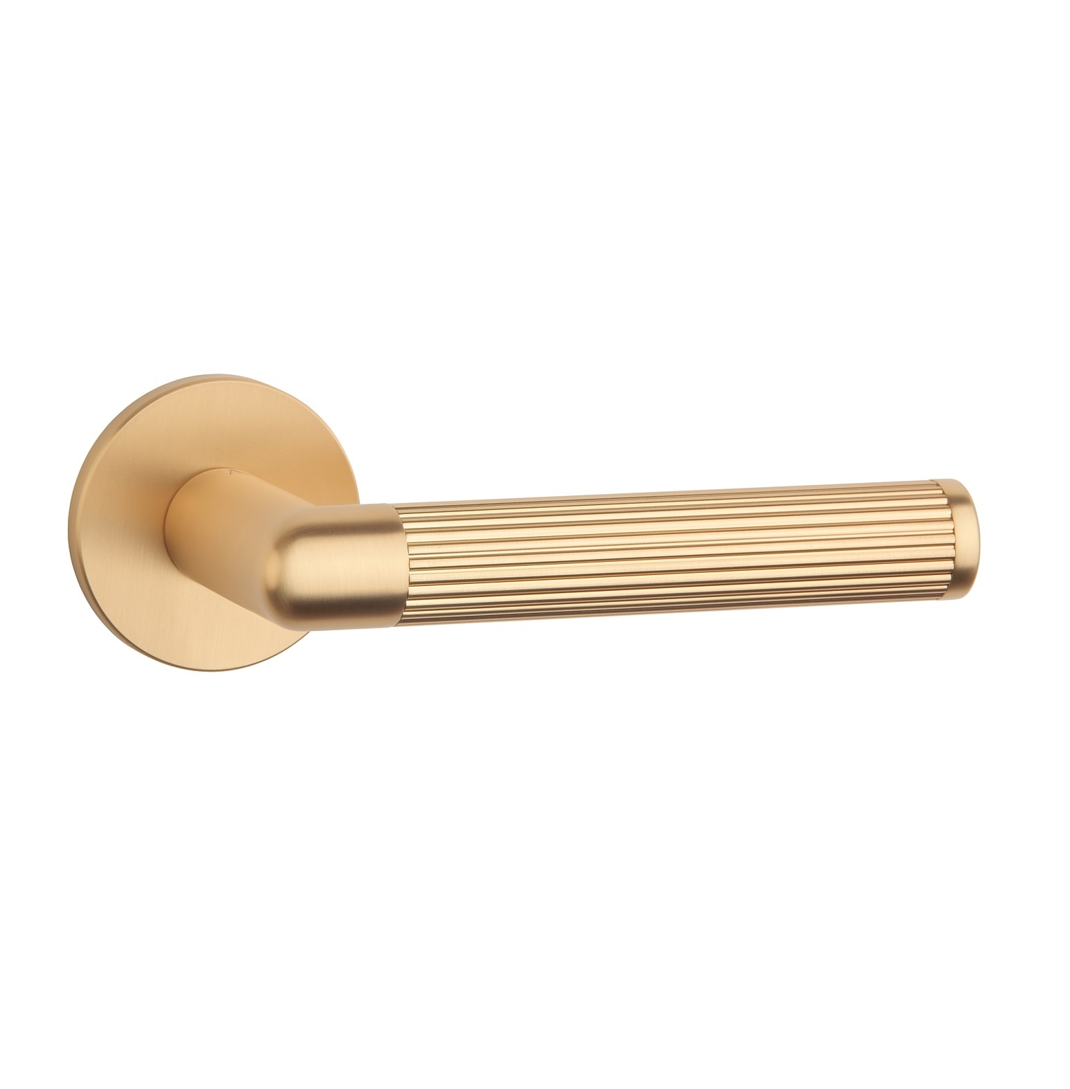 Poignées de porte massives LOBELIA en or mat sur rosaces fines rondes Ø52x5 mm d'Aprile