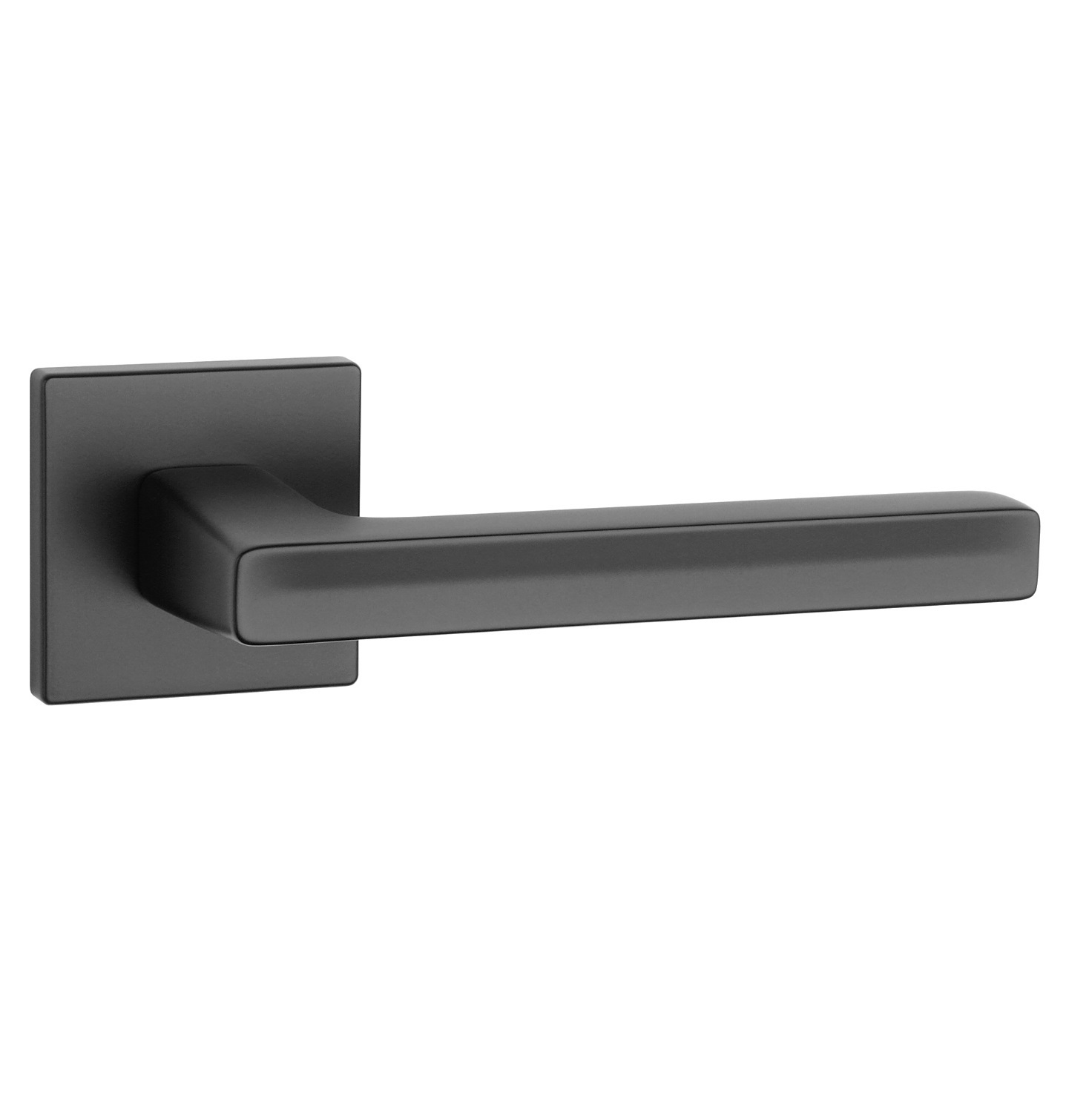 Poignées de porte noires pleines Pois sur rosaces carrées de 52x52x7mm de chez Aprille