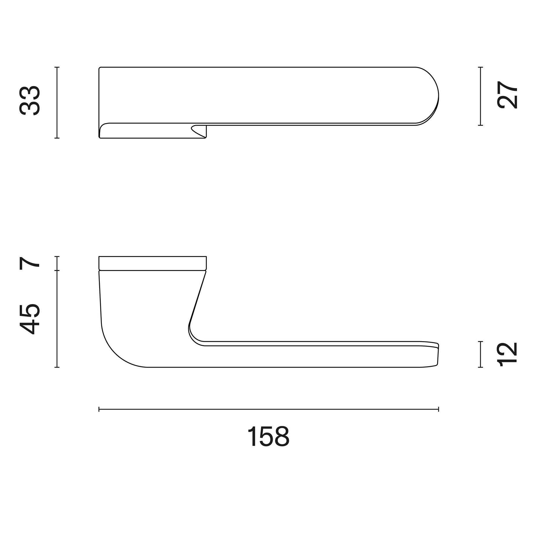 La forme de la poignée complète parfaitement la rosace rectangulaire, conférant à l'ensemble un caractère minimaliste. L'extrémité semi-circulaire et les surfaces légèrement arrondies créent un toucher agréable, conférant à l'ensemble un caractère convivial et chaleureux.