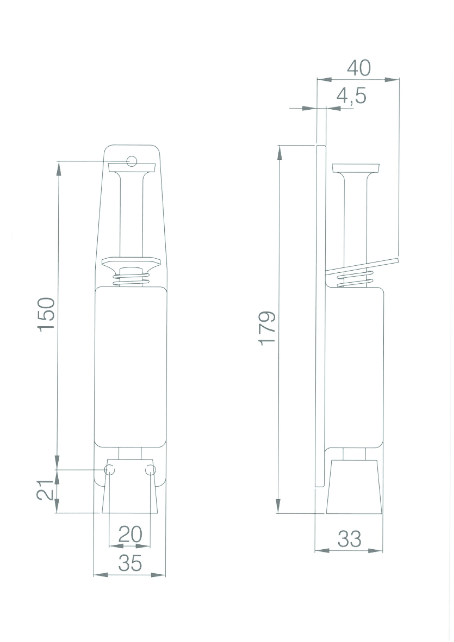 Arrêt de porte 35 x 179 luxe ouverture 40 mm en inox avec butée caoutchouc