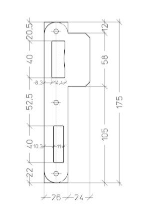 Description Gâche arrondie noire avec lèvre longue 24 mm pour serrures affleurantes Litto série 53 - 175x50 mm