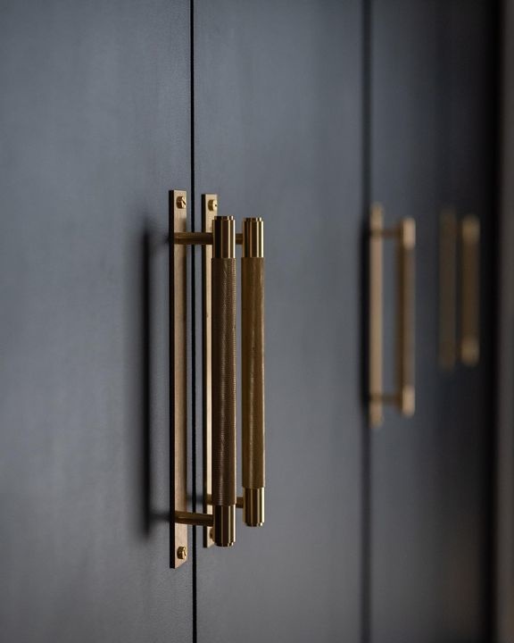 Ces poignées de meuble en laiton reposent sur une plaque arrière en laiton massif et sont disponibles en 3 longueurs : 200 mm, 300 mm ou 400 mm.