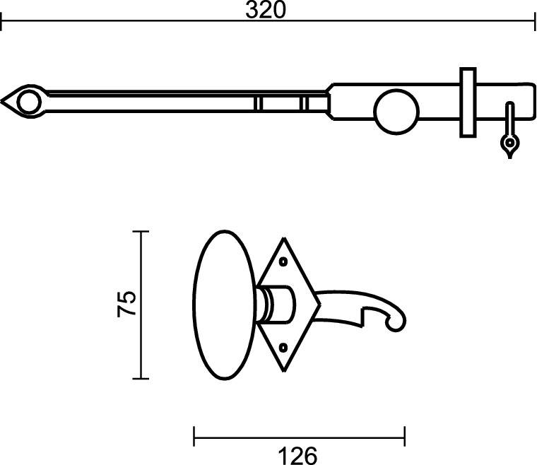 Cet ensemble est complet pour 1 porte avec une poignée de porte ovale d'un côté et une tige de l'autre côté qui monte et descend lorsque la poignée est tournée.