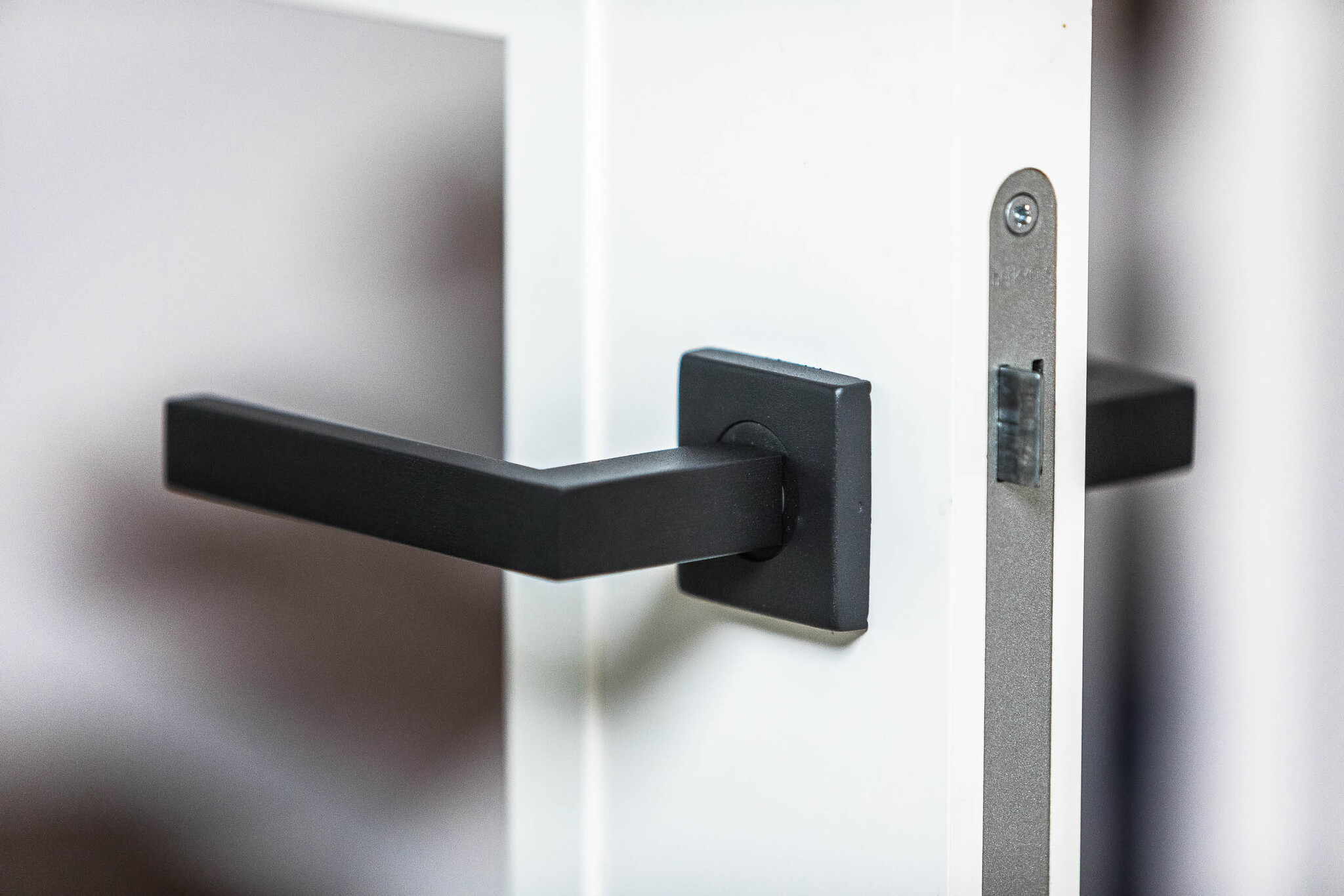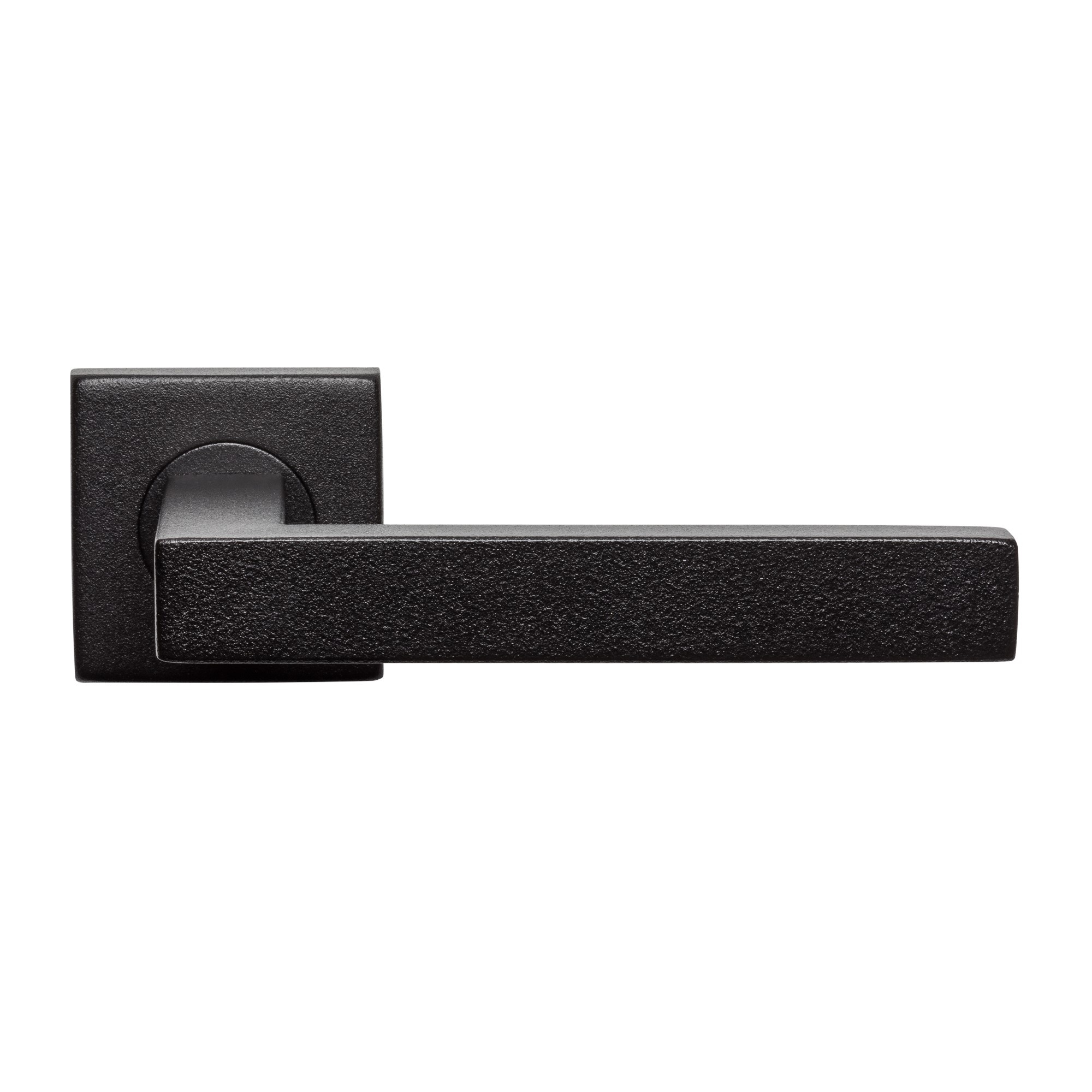 Ces poignées de porte noires sont à ressort et sont fournies par paire comprenant des rosaces carrées, une goupille carrée (8x8 mm) et du matériel de montage.