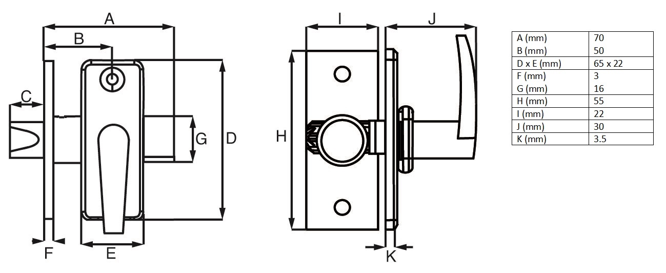 Pêne à mortaiser noir avec gâche longueur 70 mm pour le verrouillage d'une fenêtre ou d'une porte