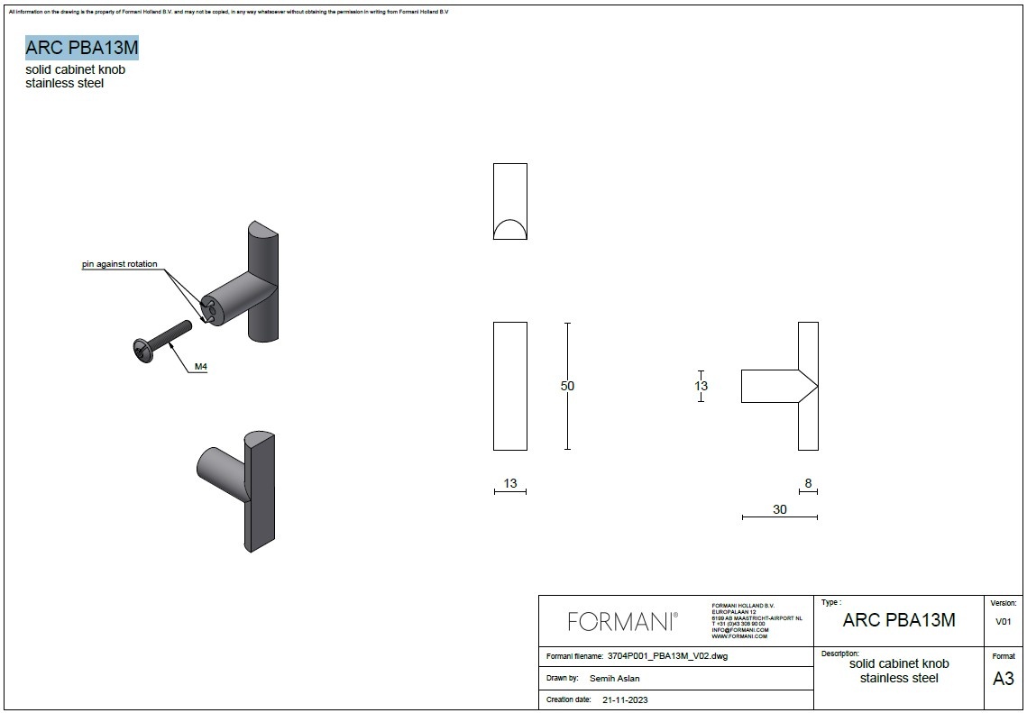 Magnifique bouton de meuble moderne ARC PBA13M conçu par Piet Boon pour Formani en acier inoxydable mat