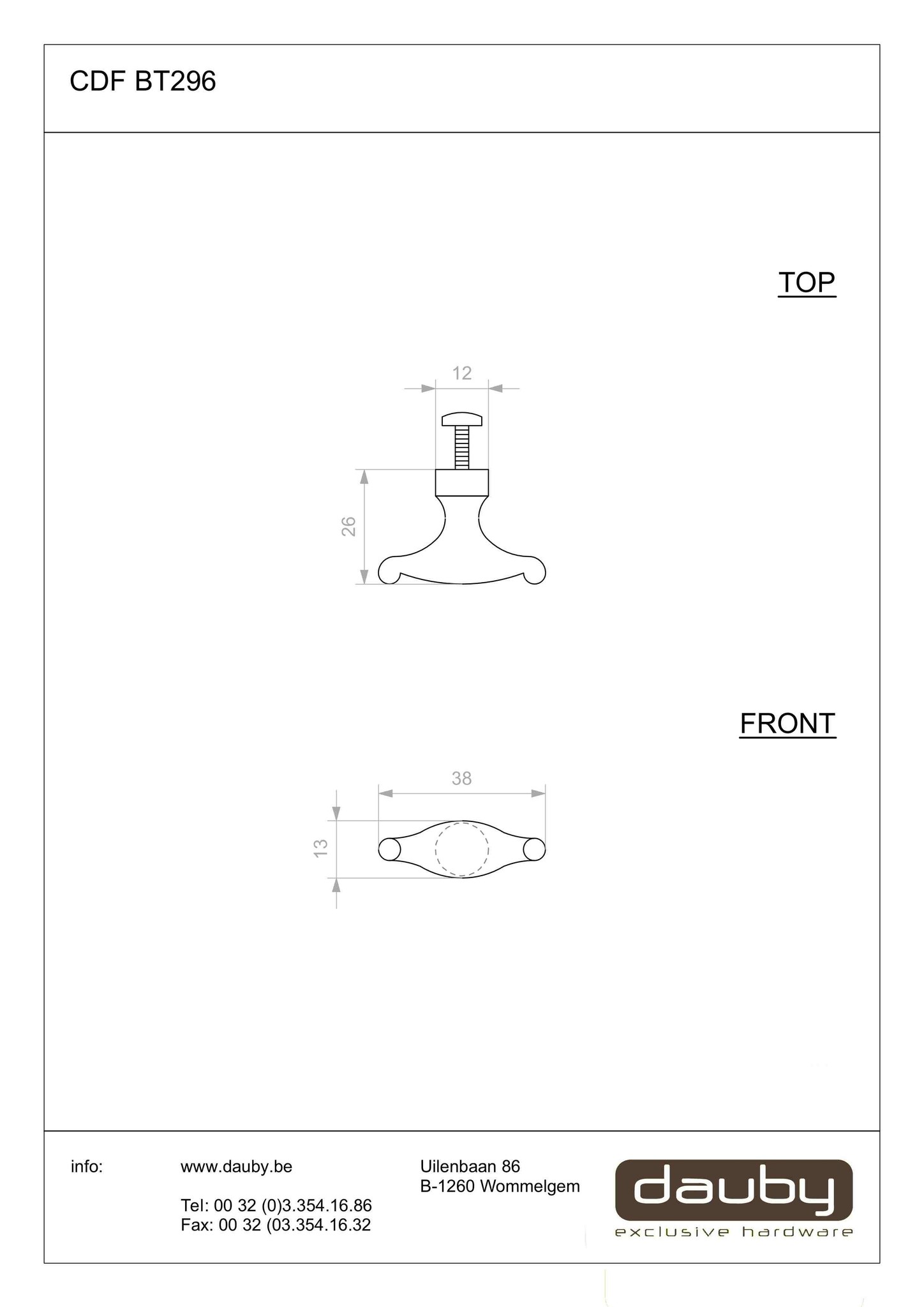 Ces boutons de meubles ont les dimensions suivantes 38x13mm et ont une profondeur de 26mm.