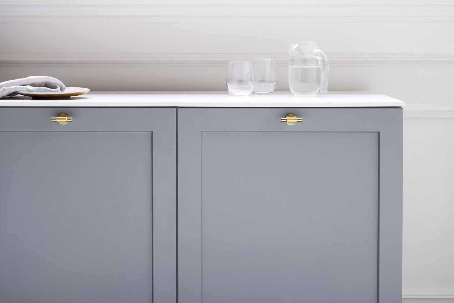 Poignée de meuble dorée modèle T de Furnipart avec poignée transversale de 54 mm de large de la collection MANOR
