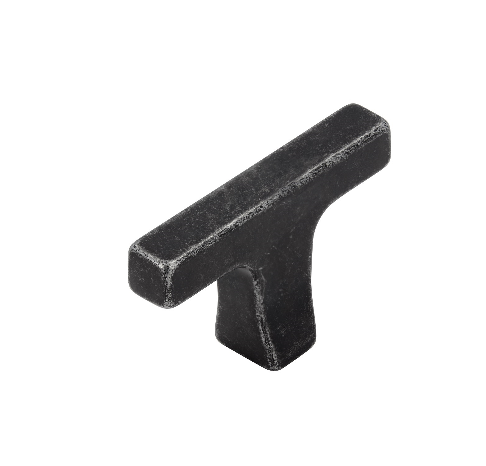 Bouton de meuble en forme de T avec une base légèrement plus large en finition couleur fer mat