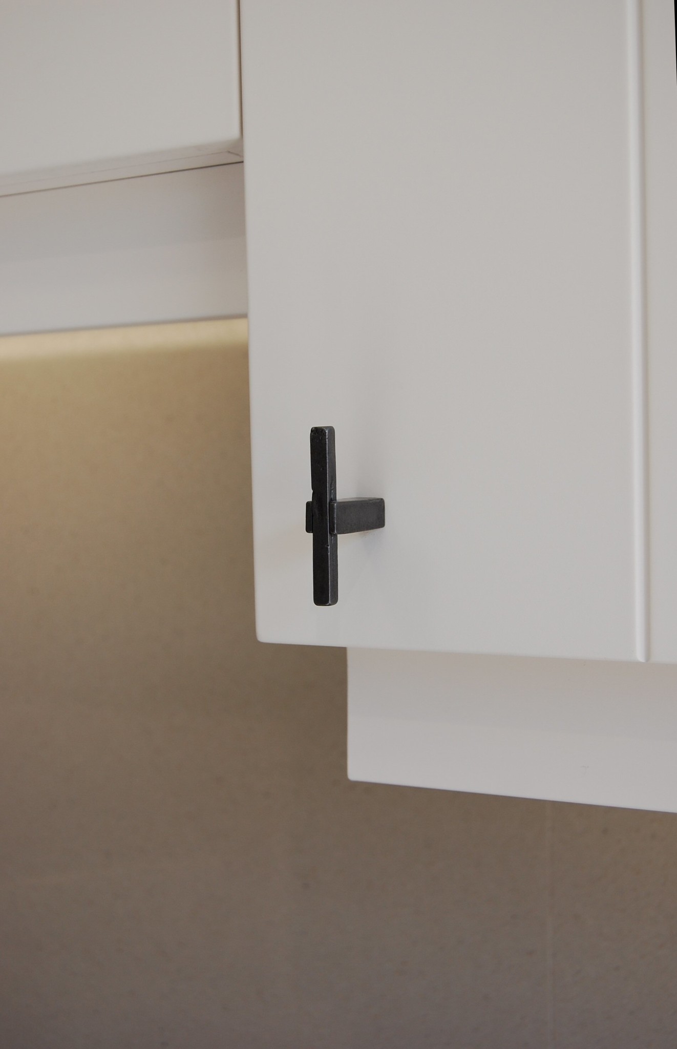 Le bâton de 60 mm semble flotter sur la base de 10x10 mm, ce qui crée un design unique. La poignée est de 36 mm vers l'avant. Les boutons peuvent être fournis en 6 versions différentes, à savoir fer vieilli, métal brut, bronze brut, bronze brut poli, bronze blanc et bronze blanc mat.