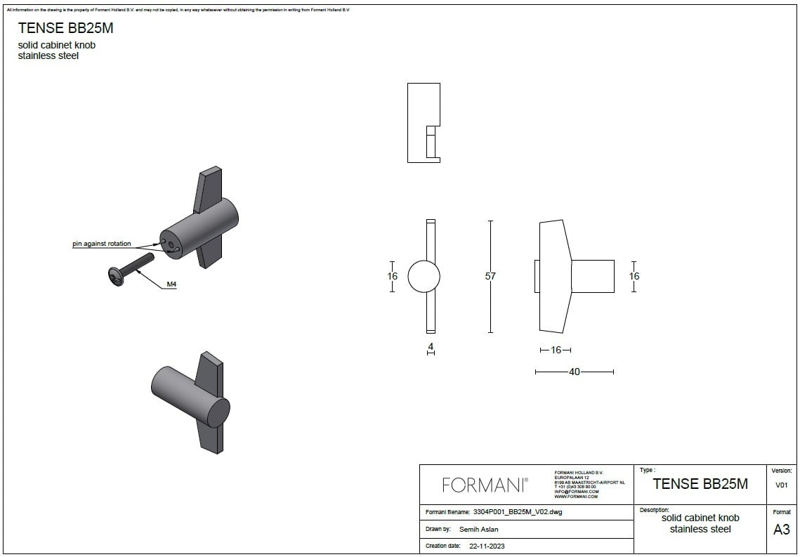 Le Formani BB25M est un bouton de meuble élégant et moderne de la collection Tense, qui allie simplicité et élégance.