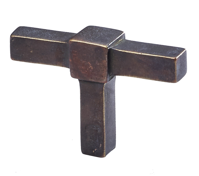 Description Bouton de meuble CROSS en forme de T, moulé au sable, design JOLIE, finition bronze vieilli