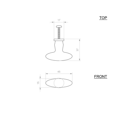 Le bouton ovale de 45x15mm repose sur un pied de Ø 17mm et est fourni par pièce avec une vis de montage M4.