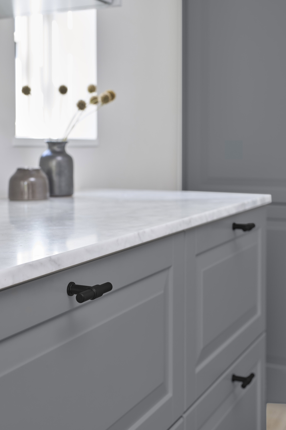 Description Poignée de meuble noire modèle en T de Furnipart avec une poignée de 75 mm de large KNOT
