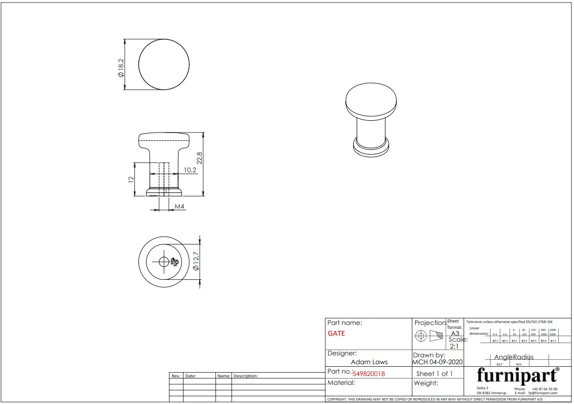 Description Bouton de meuble rond GATE de Furnipart de la collection "021" en couleur acier inoxydable