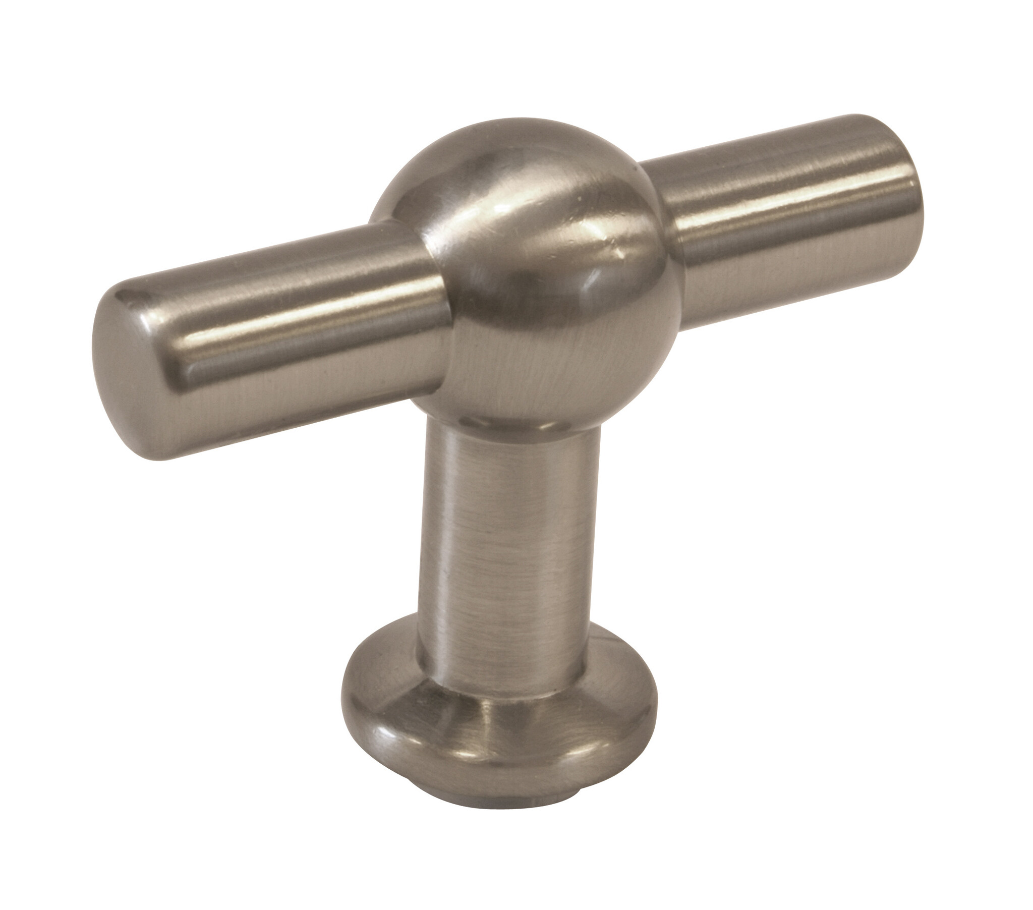 Belle poignée de meuble en forme de T en zamac finie avec un revêtement en acier inoxydable.