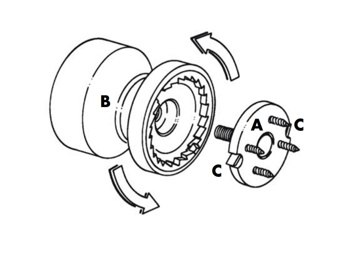Ce bouton rond de porte avant est équipé d'un système breveté qui lui permet d'être monté sur un côté. En conséquence, aucune confirmation n'est visible à l'intérieur de la porte.