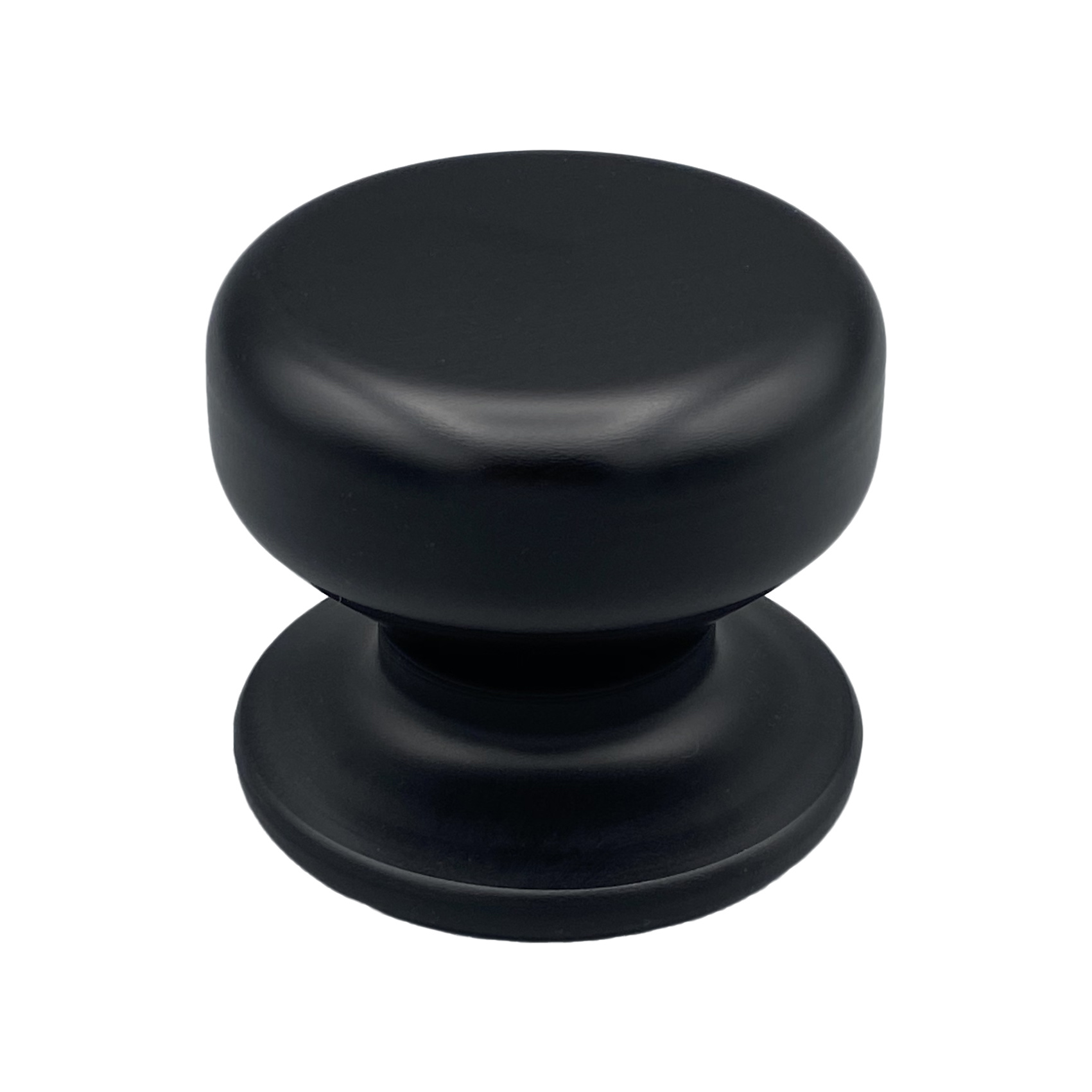 Ce bouton de porte d'entrée noir a un diamètre de 70 mm et est de forme ronde avec un devant plat.