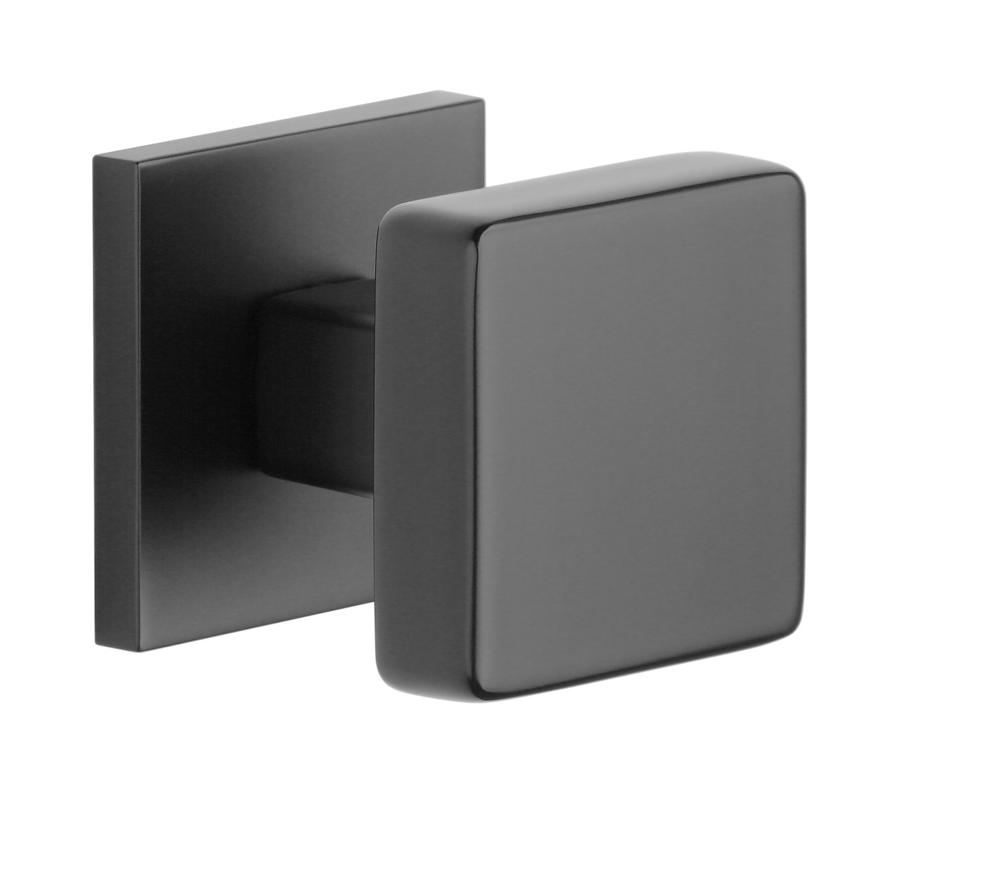 Les poignées de porte noires reposent sur des rosaces carrées de 52x52 mm et ont une épaisseur de 7 mm. Ils sont munis d'ergots qui assurent une fixation ferme.