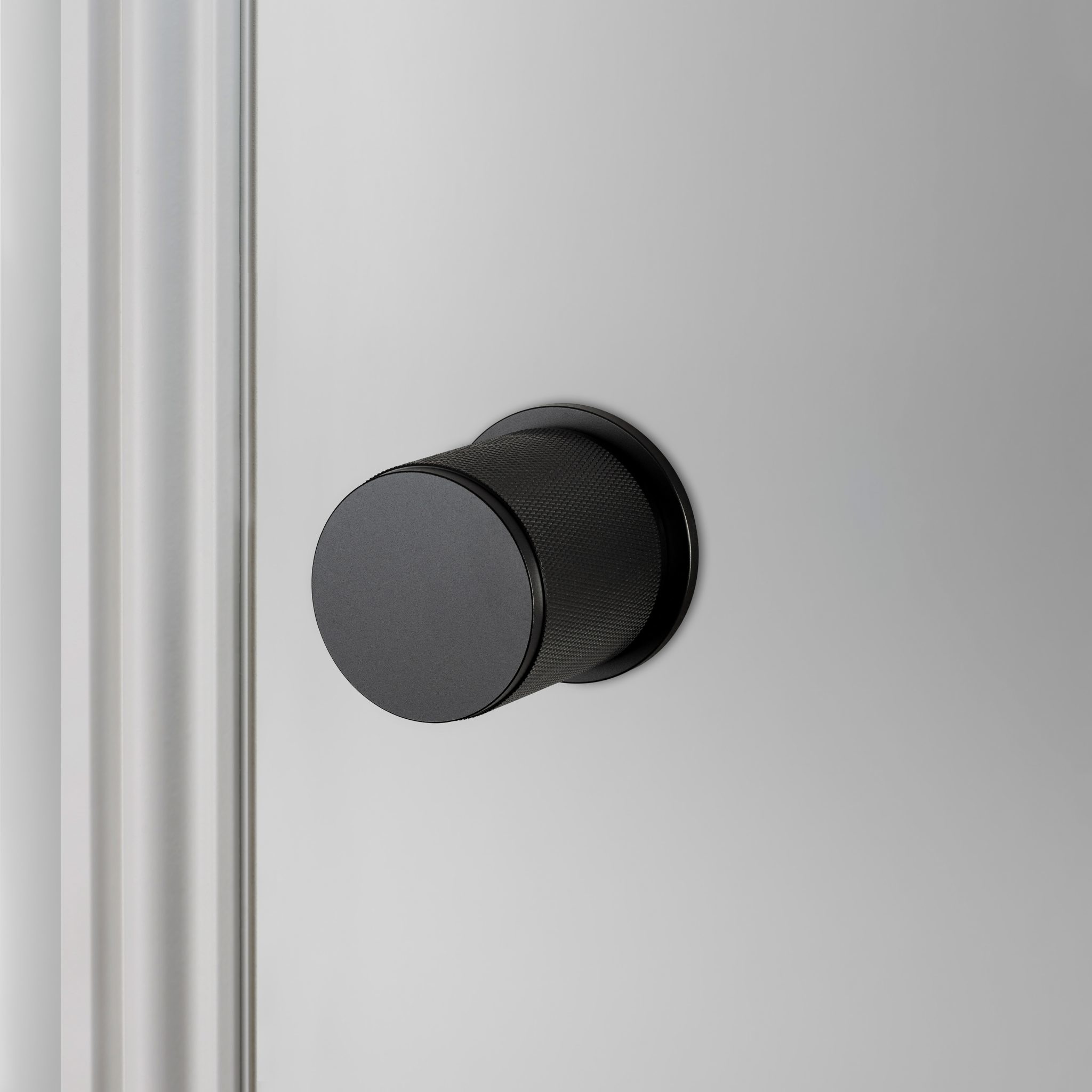 Les poignées de porte noires sont rotatives et fonctionnent comme une poignée de porte. Ils ont un diamètre de 50 mm. Les rosaces d'une épaisseur de 4 mm peuvent être fixées de part en part et ont un diamètre de 57 mm.