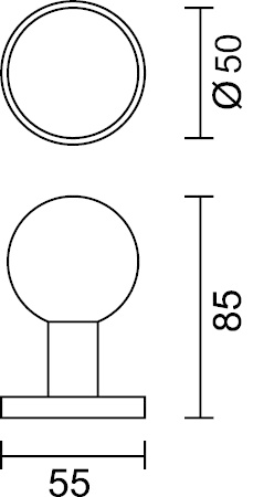 La rosette a une épaisseur de 10 mm et un diamètre de 55 mm. La profondeur totale du bouton noir est de 85 mm.