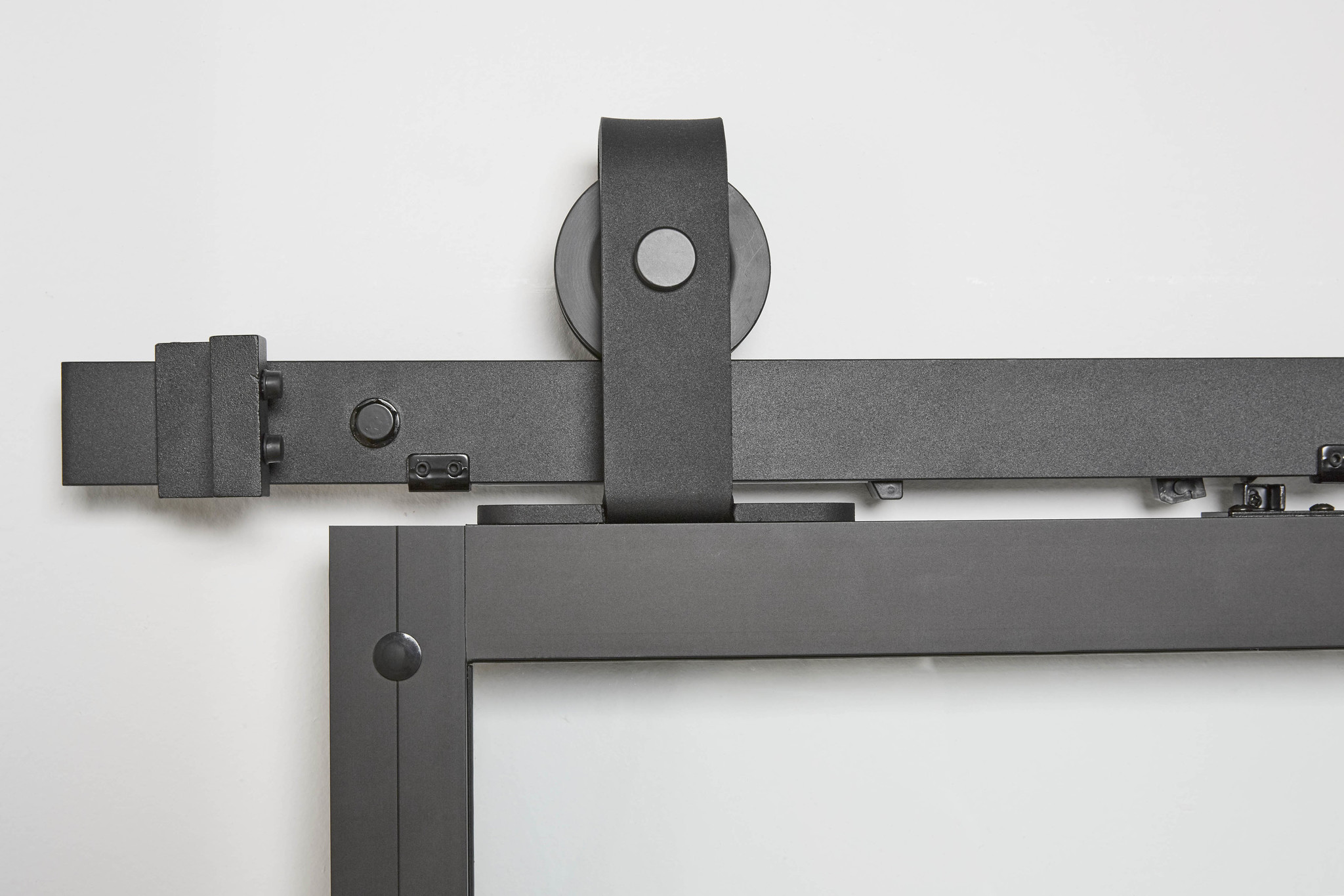 Cet ensemble de bricolage complet est livré avec une poignée de porte et un système de porte coulissante Basic TOP. Ce système de suspension en acier avec revêtement en poudre noire se compose de deux rails de 100 cm. De plus, cet ensemble se compose de deux rouleaux de suspension qui doivent être montés sur la porte par le haut.