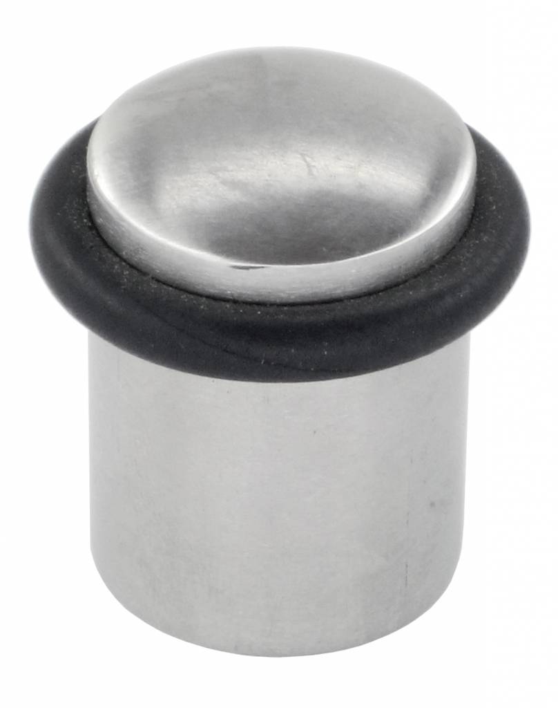 Les butées de porte en acier inoxydable ont un diamètre de 25 mm, une hauteur de 35 mm et sont équipées d'un pare-chocs en caoutchouc d'un Ø de 32 mm.