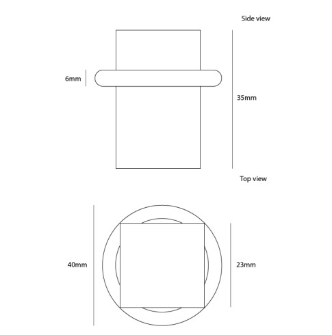 Ce butoir de porte en laiton massif mesure 23 mm de côté et a une hauteur de 35 mm. L'anneau en caoutchouc a un diamètre de 40 mm.