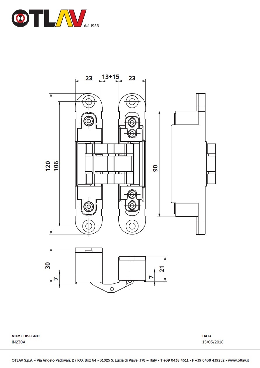 Ces charnières 3D argent mat proviennent de la société italienne Otlav, réputée depuis des années pour ses charnières.