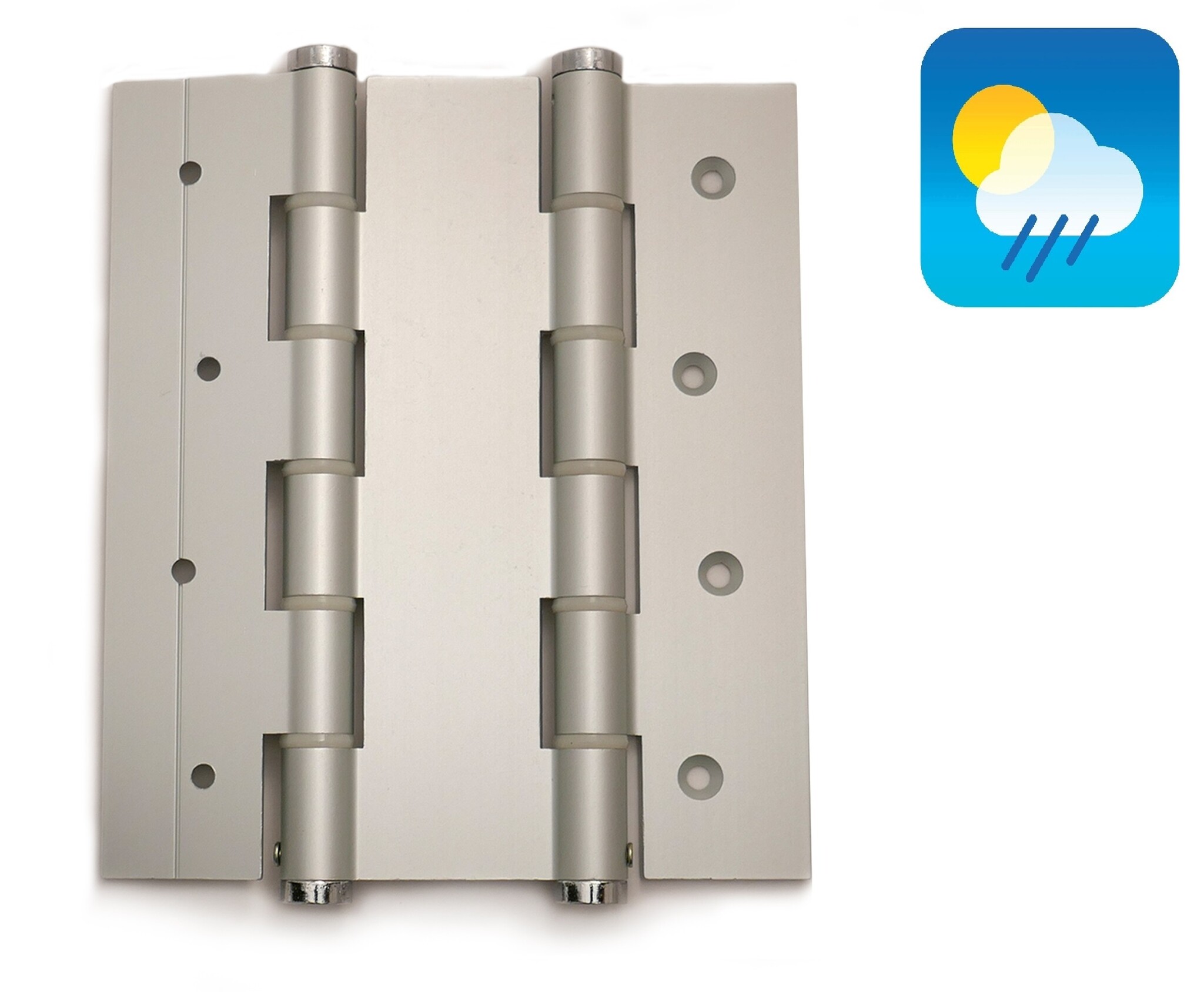 Cette charnière étant fabriquée en aluminium anodisé, elle peut être utilisée aussi bien à l'intérieur qu'à l'extérieur .