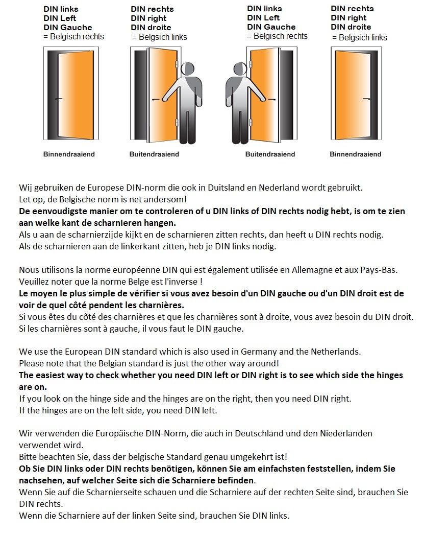 Dans le menu déroulant en haut à droite, choisissez une charnière DIN gauche (droite belge) ou une charnière DIN droite (gauche belge)