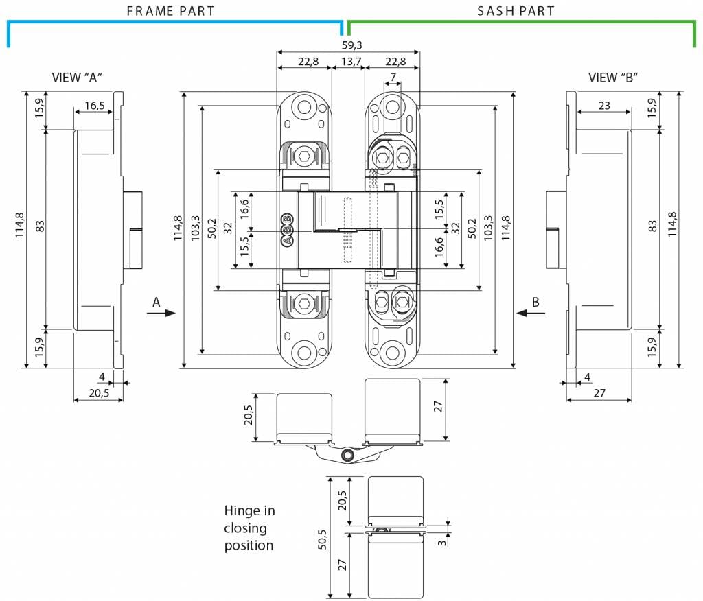 Charnière 3D invisible AGB eclipse 3 aspect inox
