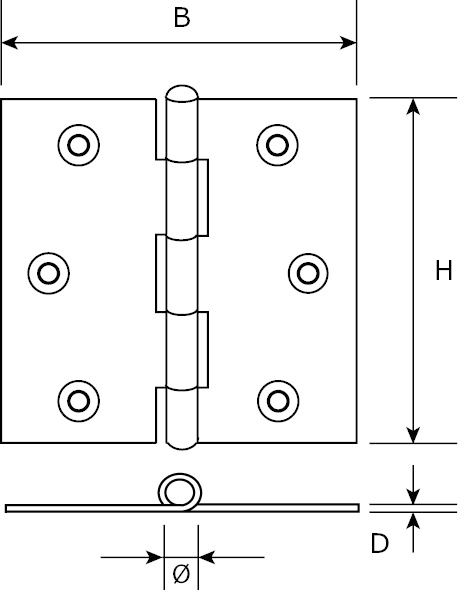 La charnière est droite. La goupille lâche de cette charnière a un bord dentelé afin que la goupille ne glisse pas vers le haut.